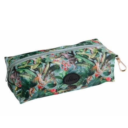 Monkey -pussukka on kaunis ja monikäyttöinen. Se sopii meikkipussiksi, penaaliksi tai pienten tavaroiden säilyttämiseen käsilaukussa ja matkoilla. Pussukka on valmistettu kestävästä materiaalista ja se kestää vesipesun. Koko: 9 x 21 x 7 cm.