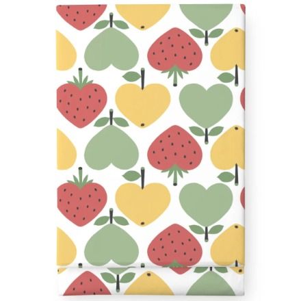 Finlaysonin neliön muotoinen Sydänhedelmät-pöytäliina sopii sekä pyöreään että neliskulmaiseen pöytään. Riina Heinosen suunnittelema herttaisen värikäs pöytäliina on valmistettu 100 % napakasta puuvillasta.